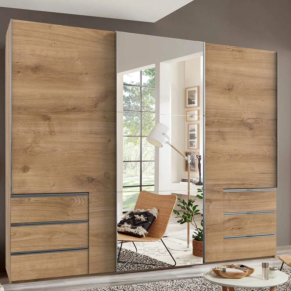 3-türiger Kleiderschrank In Eiche Mit Spiegel – Rounding