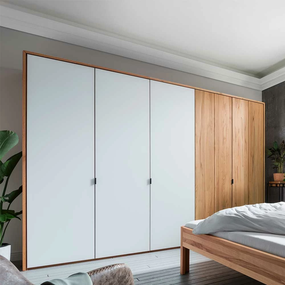 - Ausdrucksstarker Kleiderschrank in Kernbuchefarben und Weiß matt