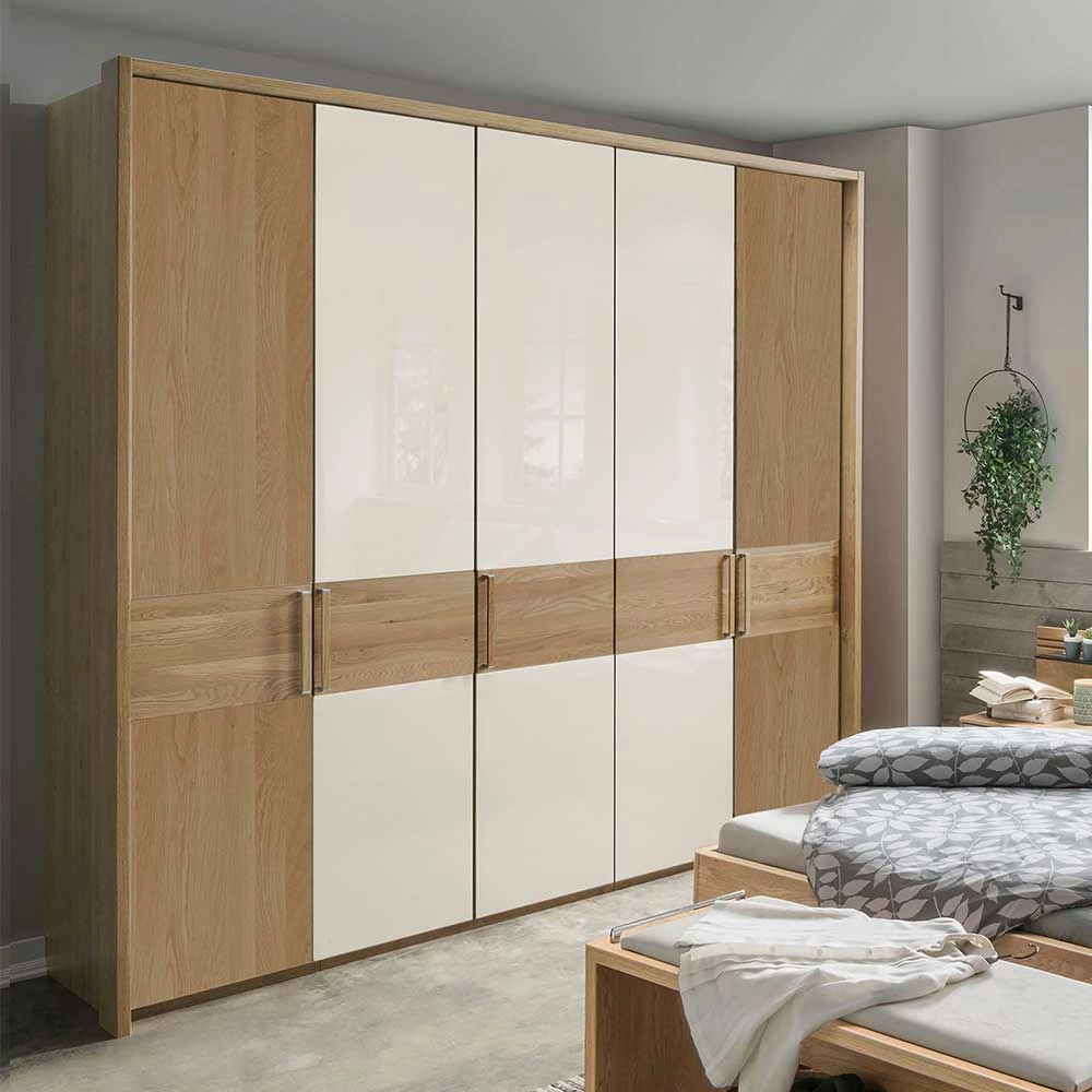 - Exklusiver Kleiderschrank in Eichefarben und Beige