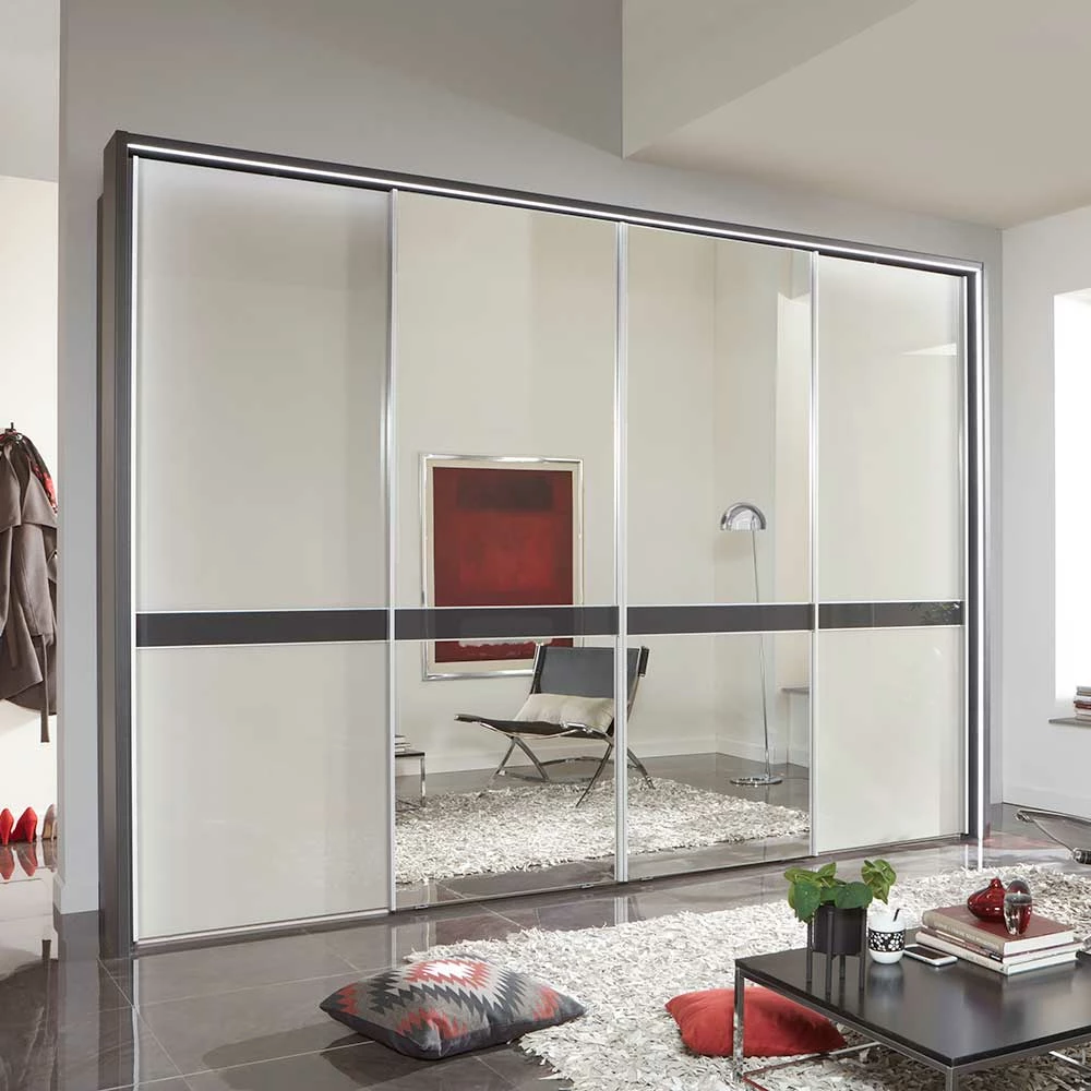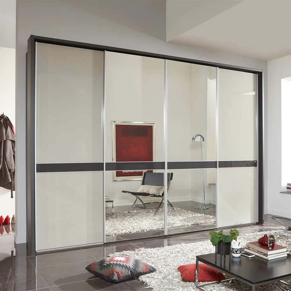- Vier komfortable Schwebetüren mit Synchron-Öffnung, dahinter vier Facheinheiten (80,1/80,1/80,1/80,1 cm)