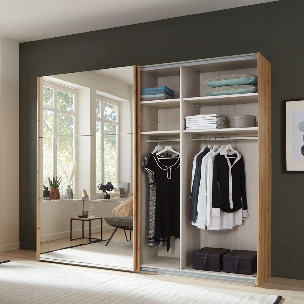 Kleiderschrank In Eiche Bianco & Spiegel – Paniola