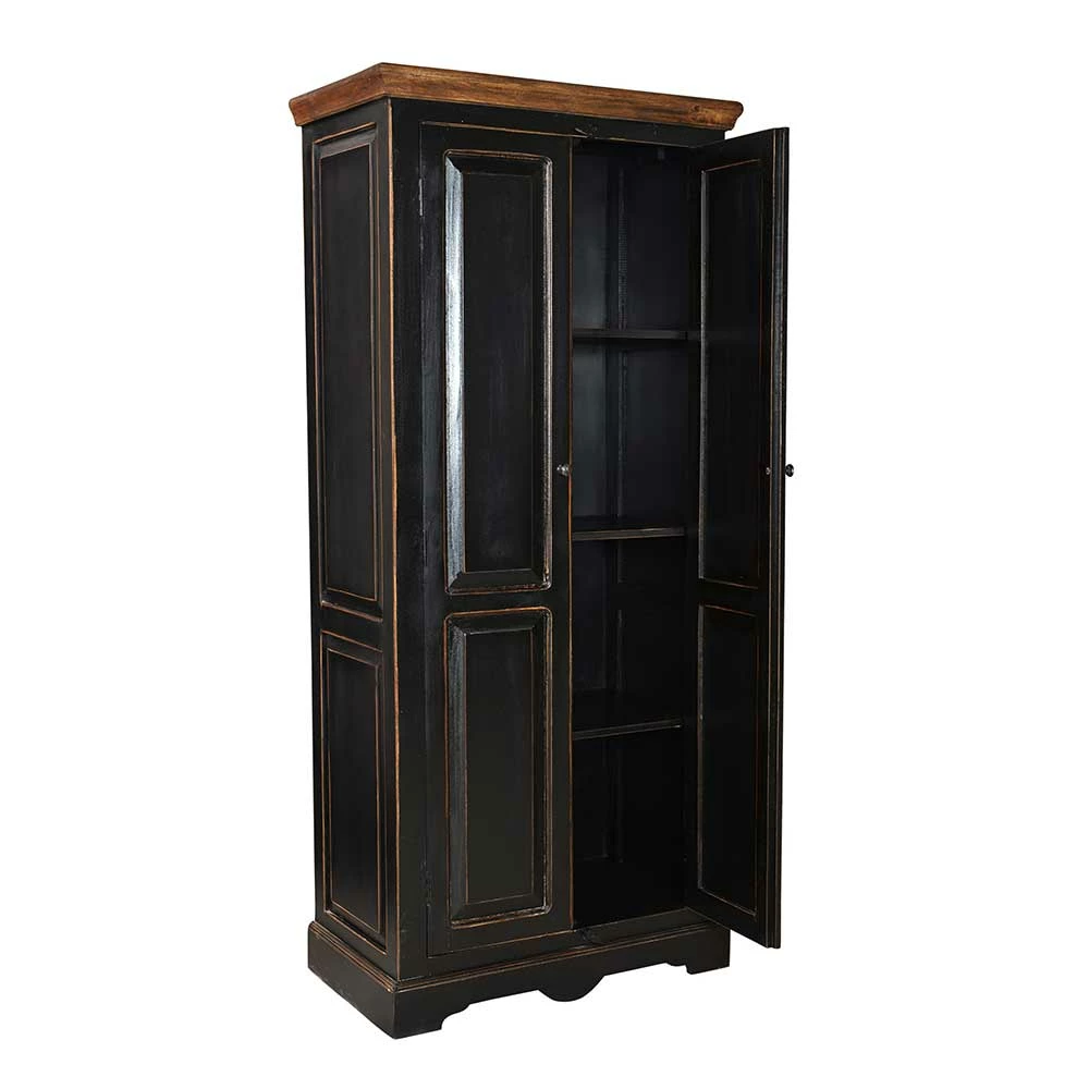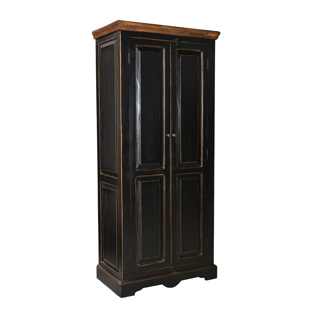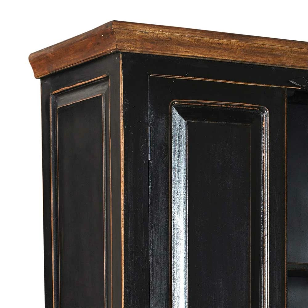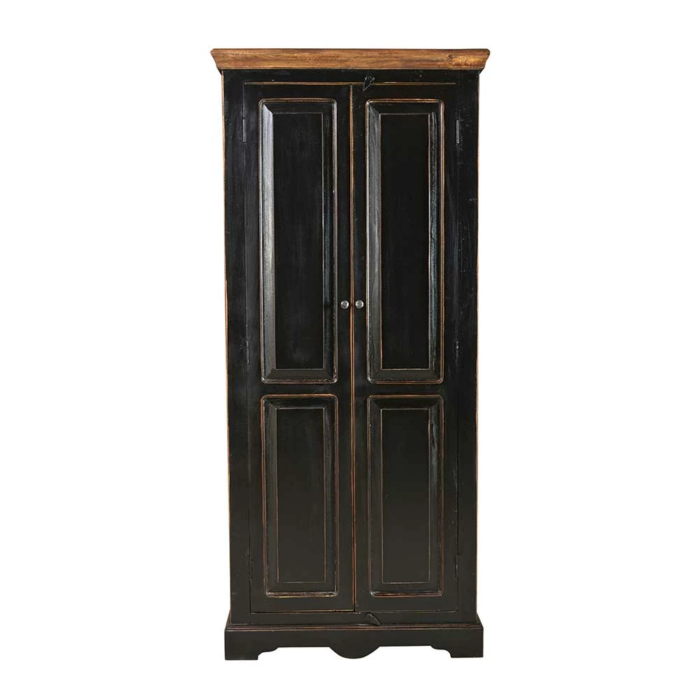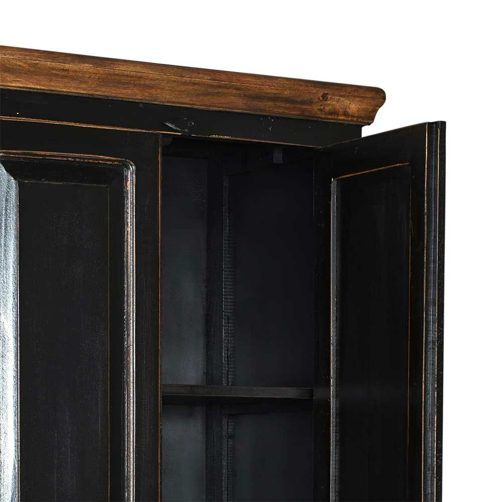 - Rustikaler Schrank in Schwarz, Oberplatte in Honigfarben abgesetzt