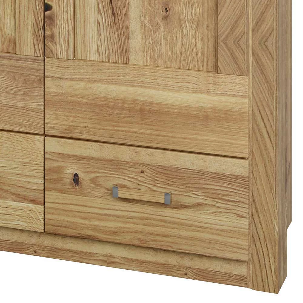 - Front Rahmen massiv, Füllungen Asteiche furniert, Massivholz und Furnier geölt, Korpus in Holzoptik foliert