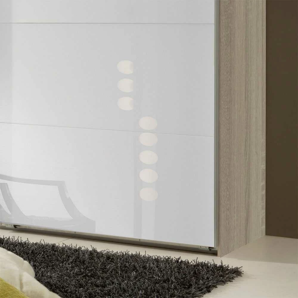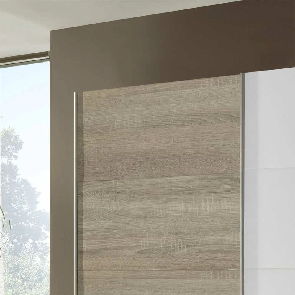- Eichefarbener Kleiderschrank (Eiche Sägerau Dekor) mit weißem Glas