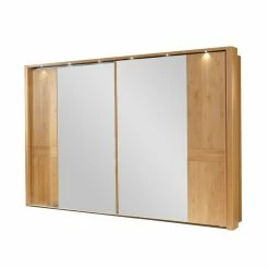 - Fronten des Schranks aus Spiegelglas und Erle Massivholz, Korpus aus stabiler Spanplatte gefertigt